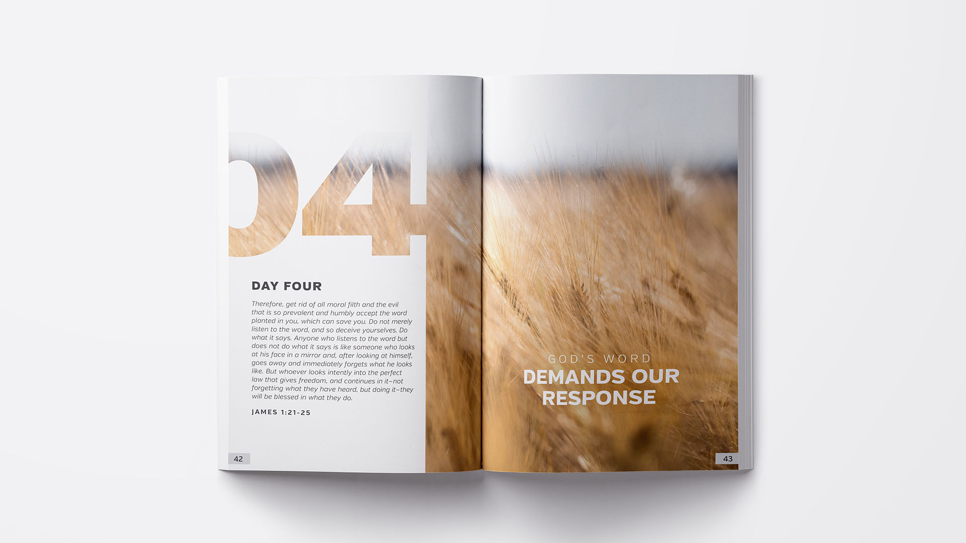 The 2017 Student Guide for Student Life Camp followed the theme of "The Word." Each day was associated with one or more elements that related to a charactaristic of the Bible. Each daily section had visuals of the element associated with that day.