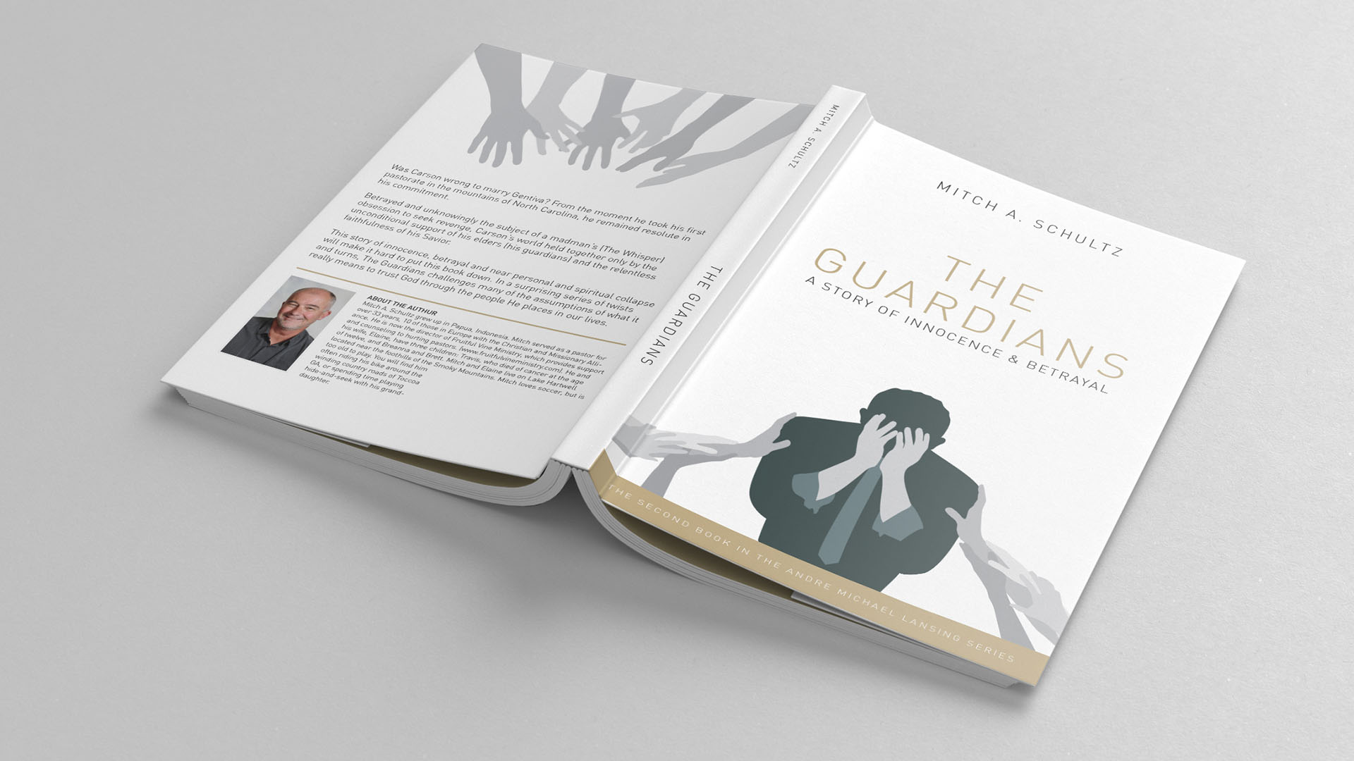 These covers were designed as a series. The Whisper is an overall darker cover to emphasize the subject matter of being on the run and trying to hide. The Guardians is the second book that discussed betrayal and innocense so the white background references innocence while the dark silhouettes reference personal betrayal. The Claim completes the series with a gold background to reference the value of life and the struggle of the main character to recognize what's really important.