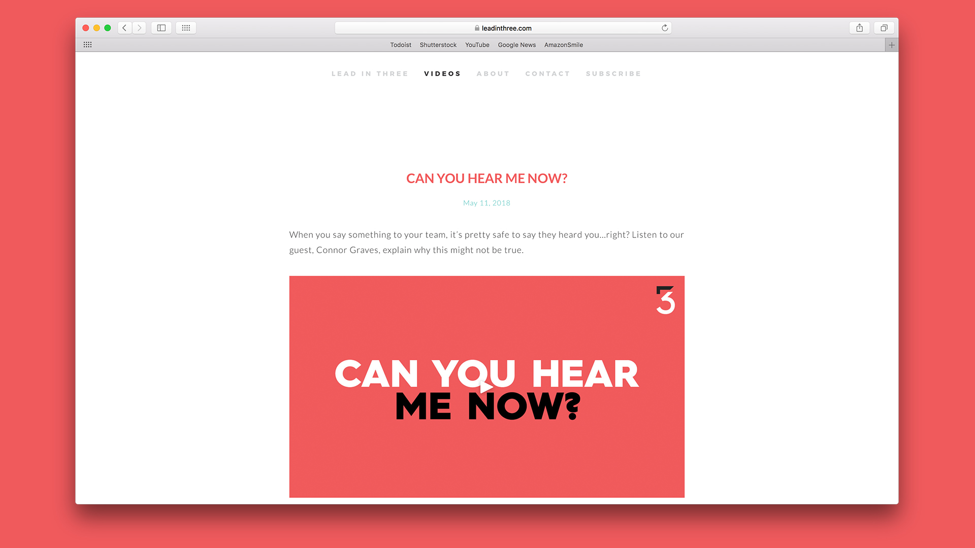 The website was customized using Squarespace and was intened for watching the published videos and connecting with Lead In Three specialists.