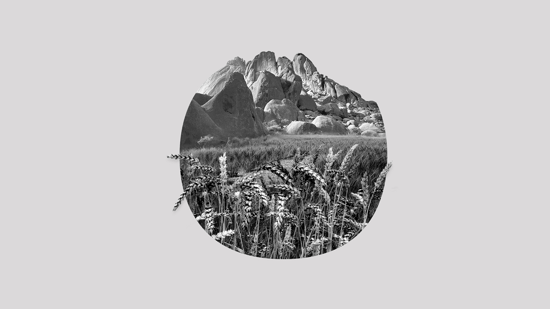 This graphic was designed to show different aspects of the Bible using the elements in the letters (water, rock, wheat, sword, light).